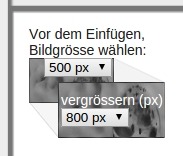 Vor dem Einfügen können, falls nötig, die Standardbildgrössen angepasst werden: