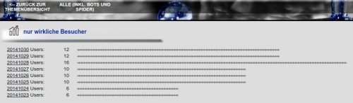 Der Zähler nutzt Jquery und Ajax um Benutzer von Bots zu unterscheiden. Wers genau wissen will, kann auch noch folgenden Ordner anlegen: "counterall". Dieser Ordner schreibt dann alle Besuche mit. Jeder Besucher wird pro Tag nur einmal gezählt. Durch den Aufruf der Administrationsoberfläche werden alle eigenen Besuche nicht gezählt.