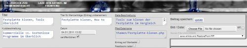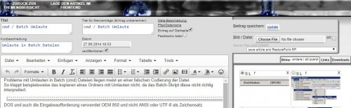 im Editor wird der eigentliche Artikel verfasst, bzw. werden die Menüpunkte gespeichert.