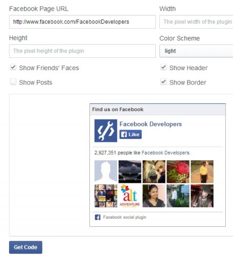 auf folgender Seite kann der Quellcode für z.B. eine LikeBox generiert werden: