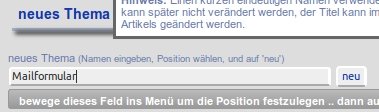 In dem Beispiel wurde ein Thema angelegt mit Namen Mailformular