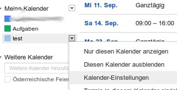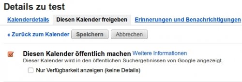 Um den Kalender auf einer Webseite einzubinden, muss dieser öffentlich gemacht werden:
