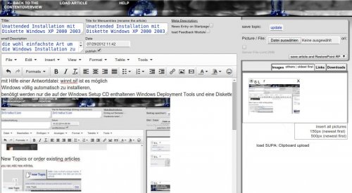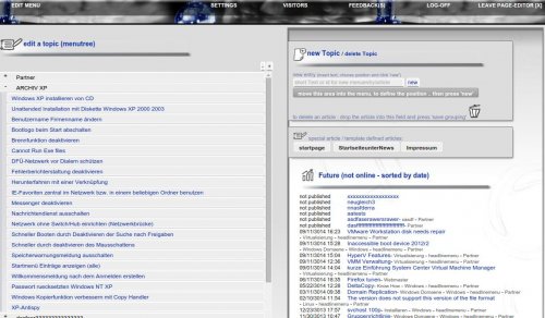 by simply clicking on the respective pages you can edit topics, write content or add images: