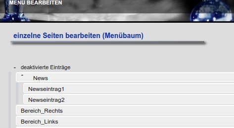 News, Newseintrag1, Newseintrag2, Bereich_Rechts, Bereich Links tauchen dabei nicht auf der Seite auf: In der Verwaltungsoberfläche sieht das so aus: