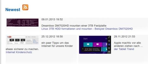 durch Auswahl "Eintrag auf Startseite" wird automatisch ein Link auf der Startseite inkl. Miniaturbild zum jeweiligen Thema angelegt: