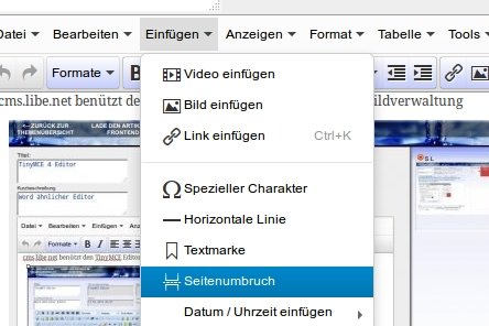 mittels "Seitenumbruch einfügen" können Teile des Artikels als Text für den Newseintrag verwendet werden: