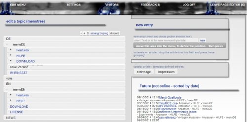 Articles and menu items can be moved freely in the menu structure using the mouse,